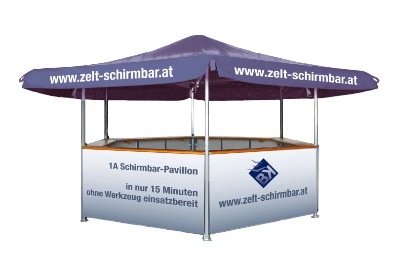 Nicht nur für Verkauf, Ausschank oder als Info-Point im Innen- und Außenbereich besonders praktisch – hat sich der 1A-Pavillon obendrein als effizienter Werbeträger bestens bewährt.